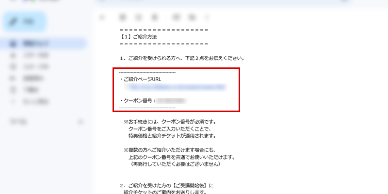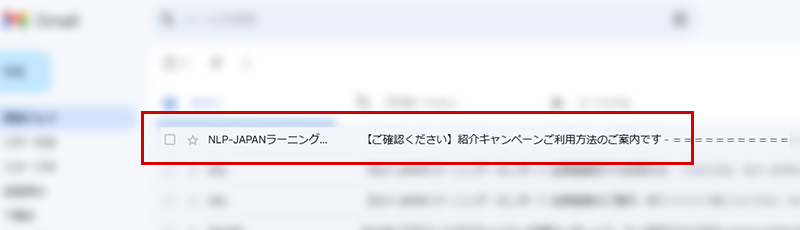 「件名:【ご確認ください】紹介キャンペーンご利用方法のご案内です」のメールをご確認ください