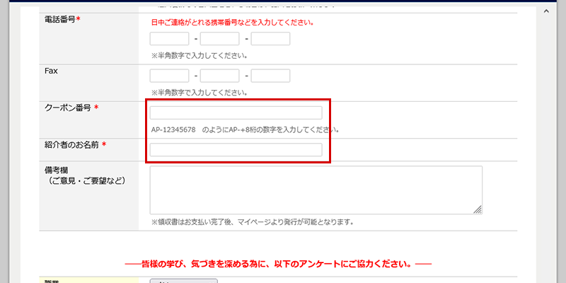 2.お申込みフォームの空欄に、ご紹介者様から受け取った