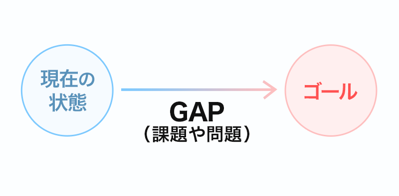 現在の状態とゴールとの間には、ギャップ(課題や問題)があります。