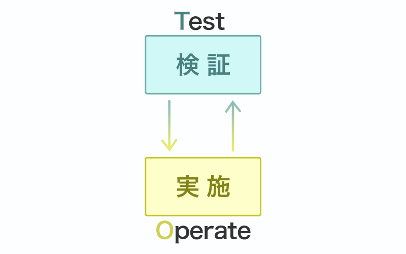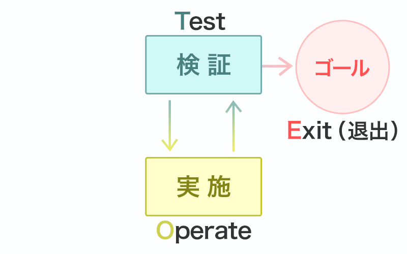 - T.=Test(検証:ゴールに合致しているか、否か、チェックする)