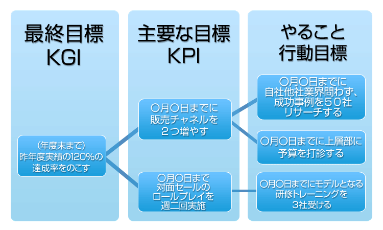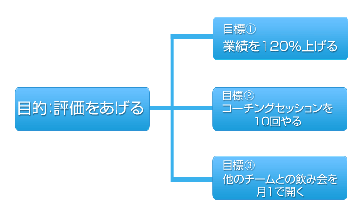 シンプルに目標管理の鉄則を例の図で表すと以下のようになります。