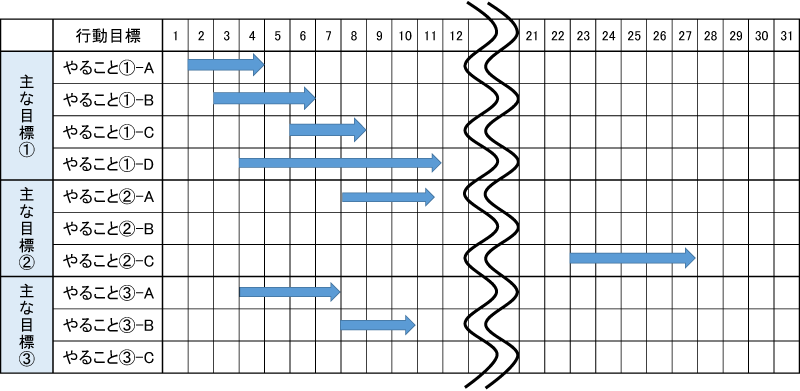 仕事の例で言えば、期限を一年後とした場合、以下のようになります。