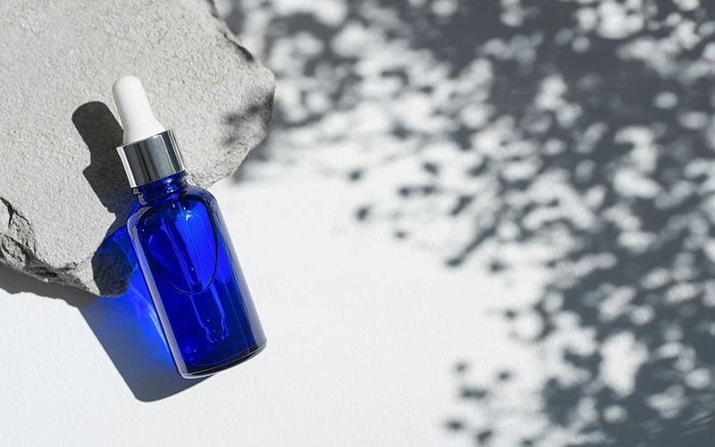 「ブルーソーラーウォーター」とは、青いガラス瓶に水を入れて金属製以外のふたをして、太陽が当たる場所において30分〜1時間くらい放置してできあがったものです。