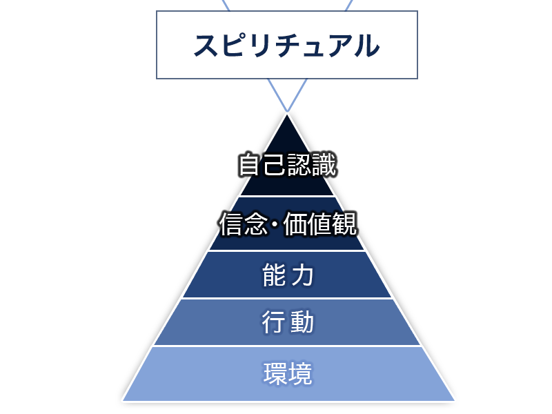 6つのレベルは、「環境」「行動」「能力」「信念・価値観」「自己認識」「スピリチュアル」を指します。