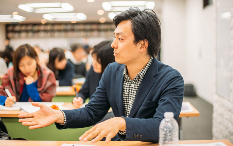 私の隣の席は経営者の方でした。周りを見渡すと、20代から60代くらいまでのビジネスパーソンが多く、他にも友達同士で参加している主婦や学生など、幅広い年齢層の方が受講しにきています。男女比率はだいたい50%でしょうか。