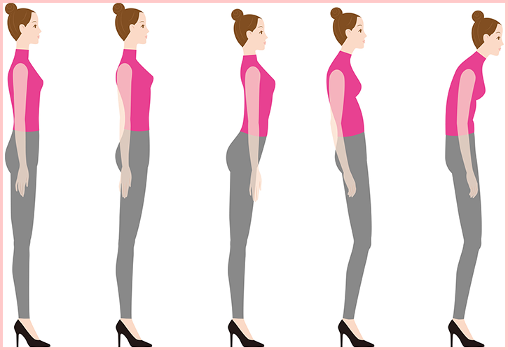 ・肩甲骨を寄せ、胸をひらく | ・肩が丸まり、猫背になっている |