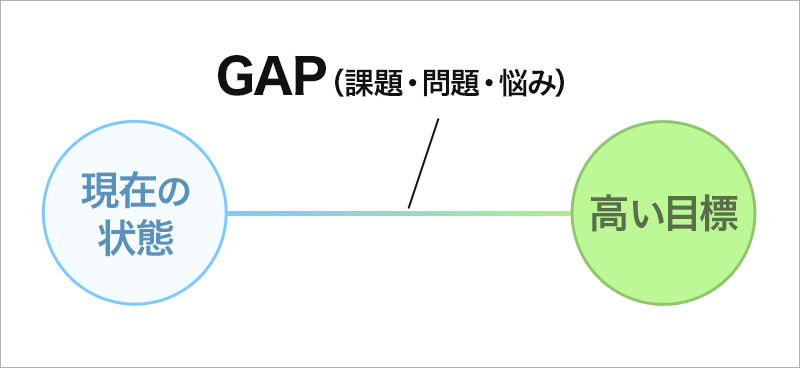 - 現状と目標を明確にし、その間にあるGAPをどうしたら埋められるかを明確にする